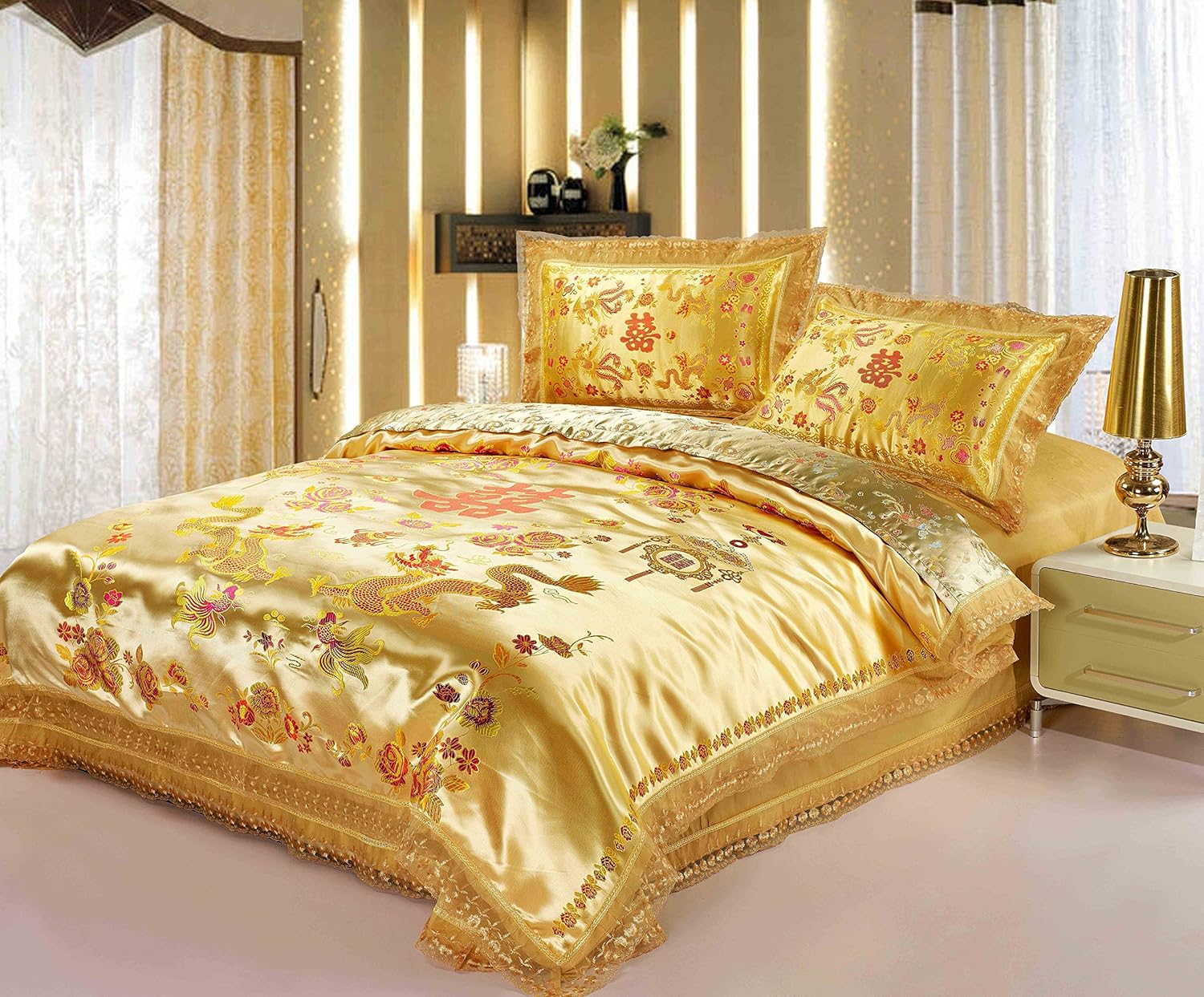 Chinese Dragon and Phoenix Bedding Sets Red Embroidery ...